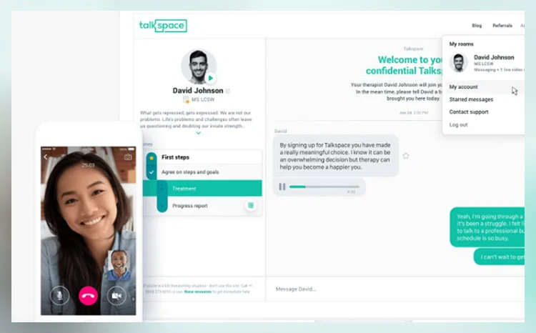 Talkspace is an online therapy platform that offers counseling and psychotherapy for teens, adults, and couples. They use a detailed matching process to connect you with a licensed and experienced therapist based on your circumstances.