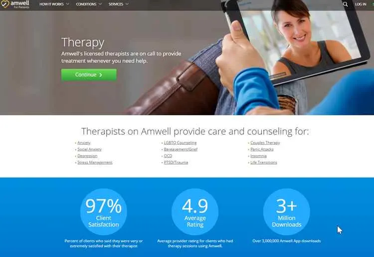 Amwell offers flexible online therapy with a network of over 350 professional counselors who specialize in various therapeutic methods. Their platform is accessible through their website or mobile app and does not require you to do so. Instead, they allow you to conveniently pay for each session.
