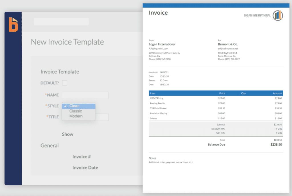 Bill.com makes it easy to create invoices by providing invoice templates or the ability to upload your own.