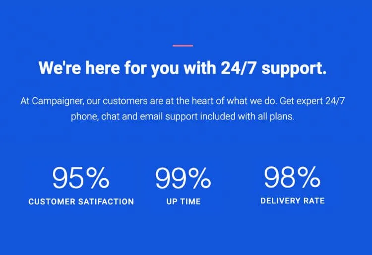 Campaigner’s customer support is very generous compared to other providers. Their support team is available 24/7, and calls are toll-free from the US, Canada, and the UK. There’s also a general international phone number. For billing or general assistance, you can contact Campaigner’s customer support using any of the email addresses listed.
