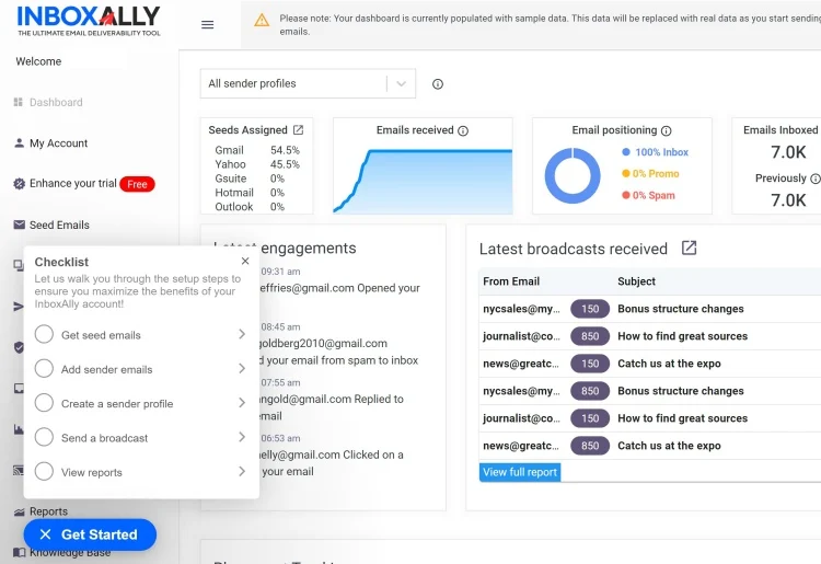 InboxAlly sends you a confirmation email to verify your account and access your free trial. There’s a getting started checklist to help you through the initial setup process.