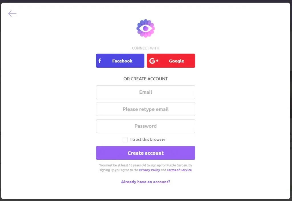 To use the app, including reading the fortunes and accessing Purple Garden, you must create an account. You can create an account with Apple, Facebook, Google, or an email address. To use Apple, Facebook, or Google, you must agree to Purple Garden’s terms and conditions of use, including the ability to track your progress. You must create a new password to register with your email address.