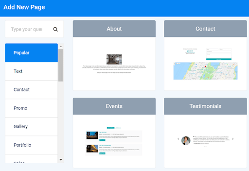 You can add or remove pre-designed blocks from each page, allowing you to add the elements you need. Different layouts are available for each block, but you can’t create your own.